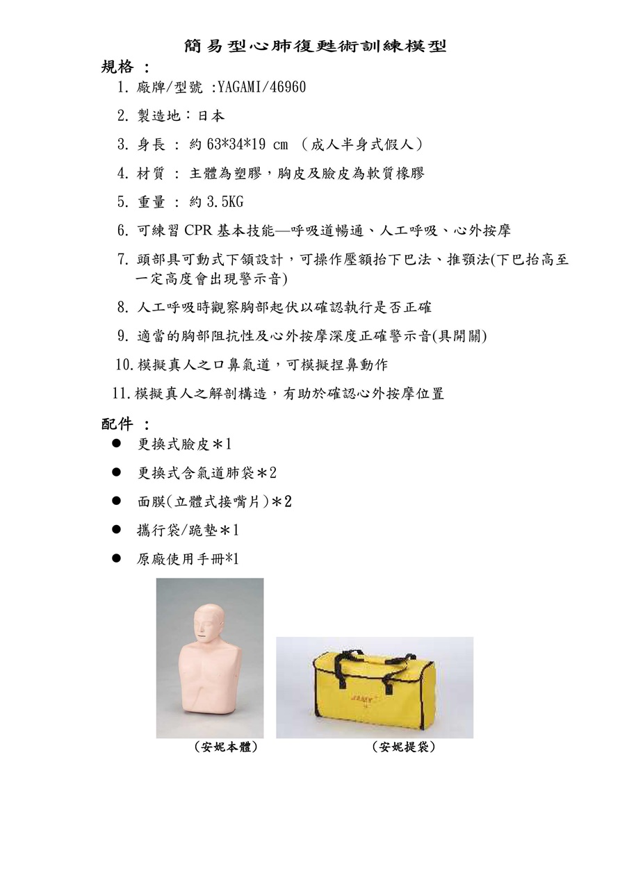 簡易型心肺復甦訓練模型(簡易安妮模型)