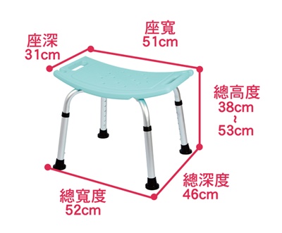 | 產品特色:PE材質座墊及靠背加EVA膠墊防滑、抗菌,冬天低溫洗澡坐下時不會顫冷,鋁合金結構不生鏽。