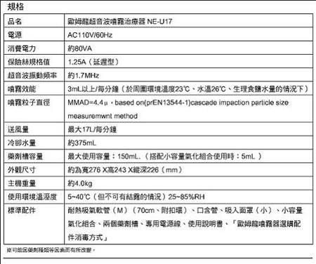 - 配件:蛇形管*1藥杯*5咬口器*1面罩*1