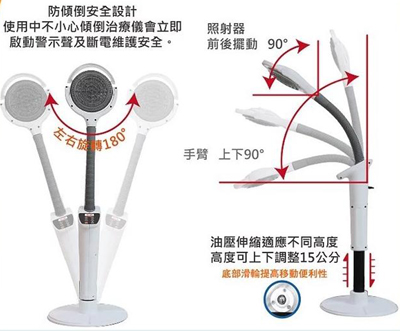 - 紅外線燈調整座,可調整角度,伸縮長度。